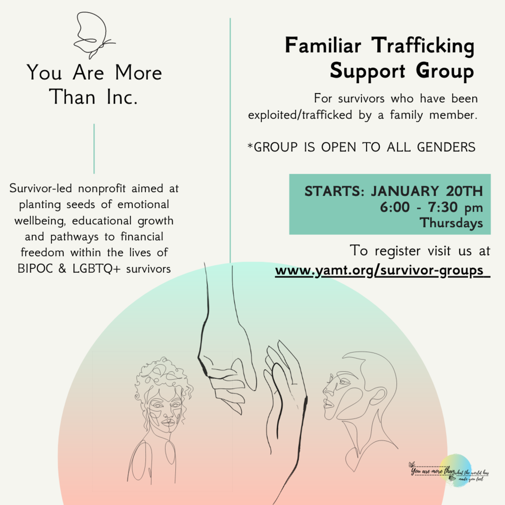 This survivor-led organization offers a virtual support group for survivors who have been exploited/trafficked by a family member. To register, please click here.